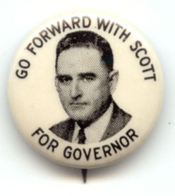Scott became governor in January 1949 after defeating the Republican Party's candidate by a wide margin. Once in office, he helped the rural North Carolinians who voted for him. Scott initiated what became known as the Go Forward program. This program secured funding for schools, rural roads, and electricity and telephones for farms. He faced pushback from the state's conservative legislators and business interests. They did not believe the state should spend funds on these priorities. In spite of the opposition, Scott's efforts were fairly successful. In 1949 alone, he secured $200 million in funding for roads and $25 million for school construction. And more than 83,000 telephones were brought to the homes of rural North Carolinians.
